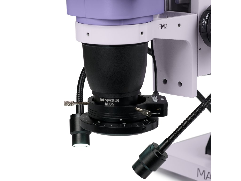 Mikroskop je vybaven dvěma osvětlovacími soustavami pro pozorování v odraženém světle: prstencovým světlem s polarizačním filtrem a světlem na husím krku.
