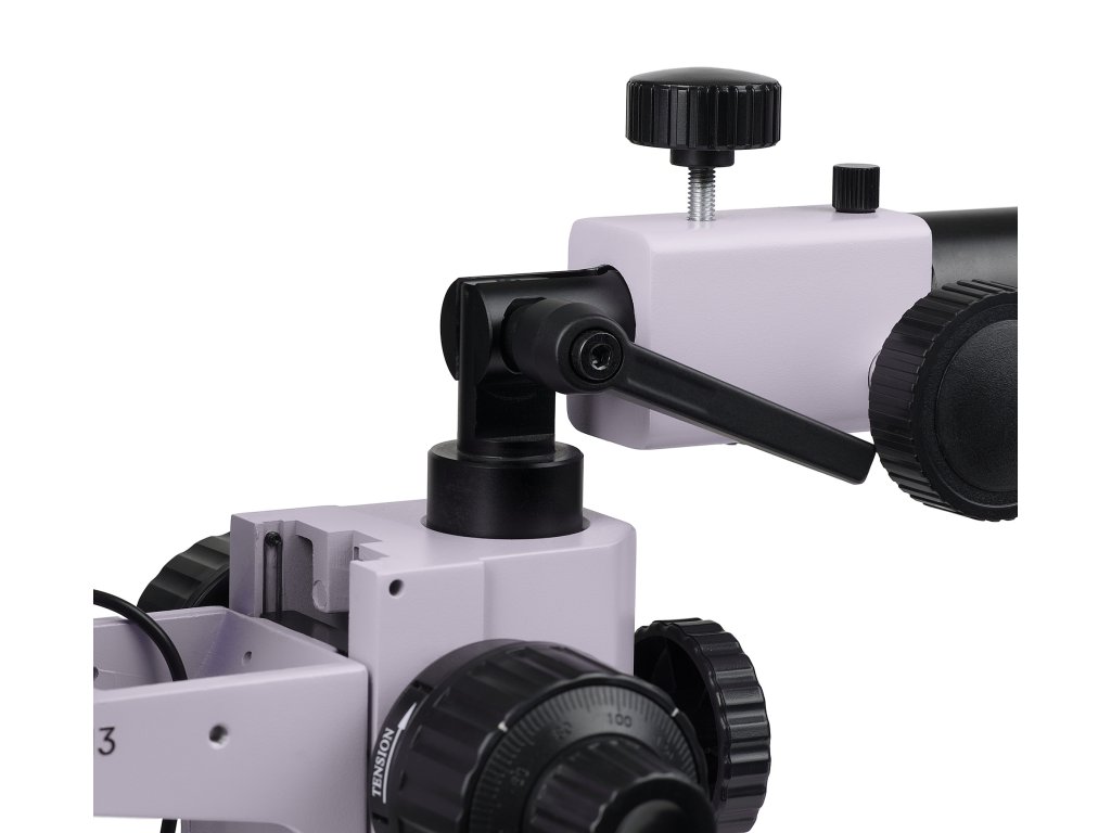 Na konci stojanu je mechanismus pro změnu úhlu optické osy. Obsluha může pozorovat preparát na stole a dívat se na něj z úhlu. Tato funkce umožňuje pohodlnější manipulaci, kontrolu kvality pájení a pozorování zakřivených objektů.