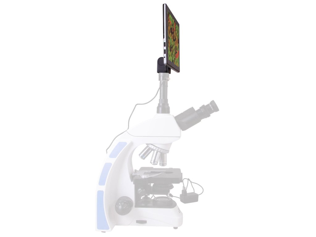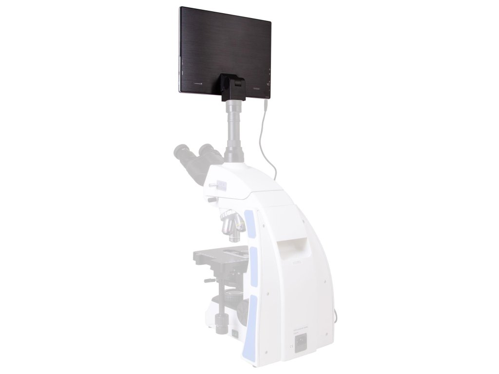 Fotoaparát disponuje standardním průměrem tubusu a lze jej instalovat na mikroskopy s okuláry o průměru 23,2 mm. Nedoporučujeme takto používat fotoaparát s monokulárními a binokulárními mikroskopy, jeho obrazovka je poměrně těžká a vzhledem k nakloněné poloze by mohlo dojít k jeho převrácení. Fotoaparát proto používejte pouze s trinokulárními modely, které mají samostatný vertikální tubus. K uchycení kamery k tubusu okuláru je třeba montážní adapter (k zakoupení samostatně).