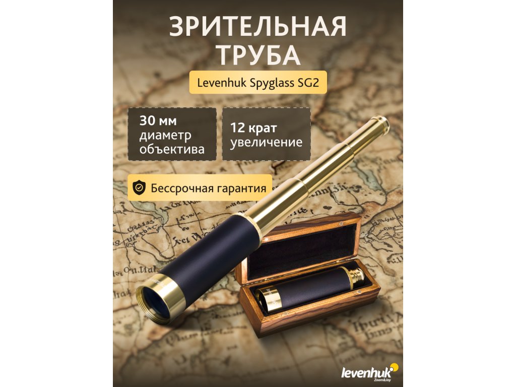 Spektiv Levenhuk Spyglass SG2 se skládá ze tří teleskopických mosazných trubek. Hlavní část tubusu je potažena kůží. Optika spektivu je vyrobena ze skla BK-7 a čočka objektivu je kvalitní a citlivá na dopadající světlo. S tímto spektivem budete vždy mít ostrý, jasný a kontrastní obraz.