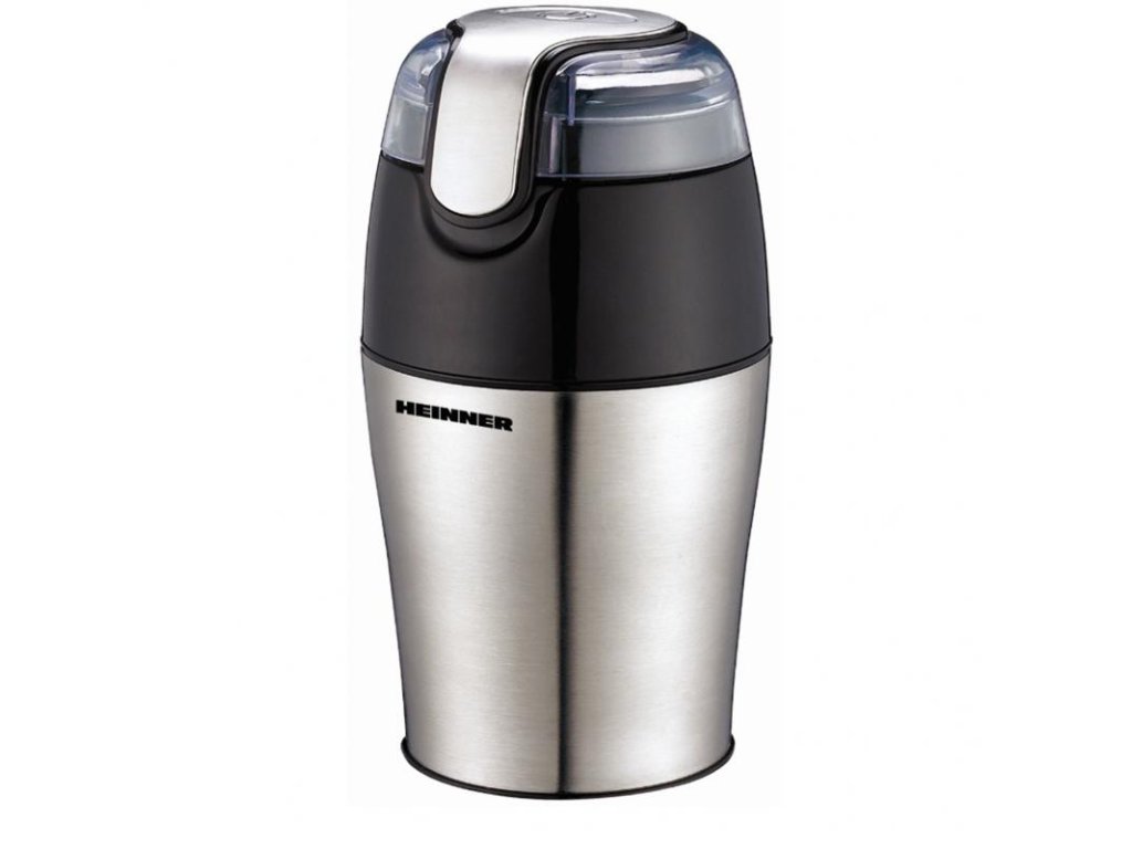 HEINNER HCG-150SS je elektrický mlýnek na kávu s kapacitou až 50 g zrnkové kávy. Disponuje výkonem 150 W a nerezovým pouzdrem i nerezovou čepelí, které zaručují dlouhou životnost a efektivní mletí. Ovládání je velmi jednoduché – stačí stisknout víko mlýnku. Design je elegantní a moderní v nerezovém provedení.