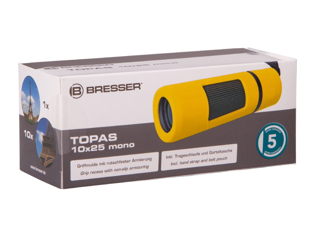 Lehký a kompaktní monokulární dalekohled, který se stane vaším věrným společníkem na každé cestě. Díky zvětšení 10x vám neunikne ani jediný detail. Kvalitní skleněná optika s antireflexní vrstvou na všech aktivních plochách zaručuje vždy ostrý, jasný, živý a vysoce detailní obraz pozorovaných objektů. Monokulární dalekohled Bresser Topas 10x25 je ideální volbou pro cestovatele, milovníky přírody a pěší turistiky i sportovní fanoušky.