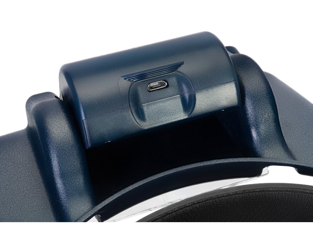 Čelenka lupy je nastavitelná, takže ji lze bezpečně upevnit na hlavu. K dispozici je vestavěné LED osvětlení s nastavitelným jasem. Výhodné je, že osvětlení je napájeno prostřednictvím dobíjecí baterie – není třeba utrácet peníze za baterie. Dobíjecí baterie je napájena přes microUSB – USB kabel.