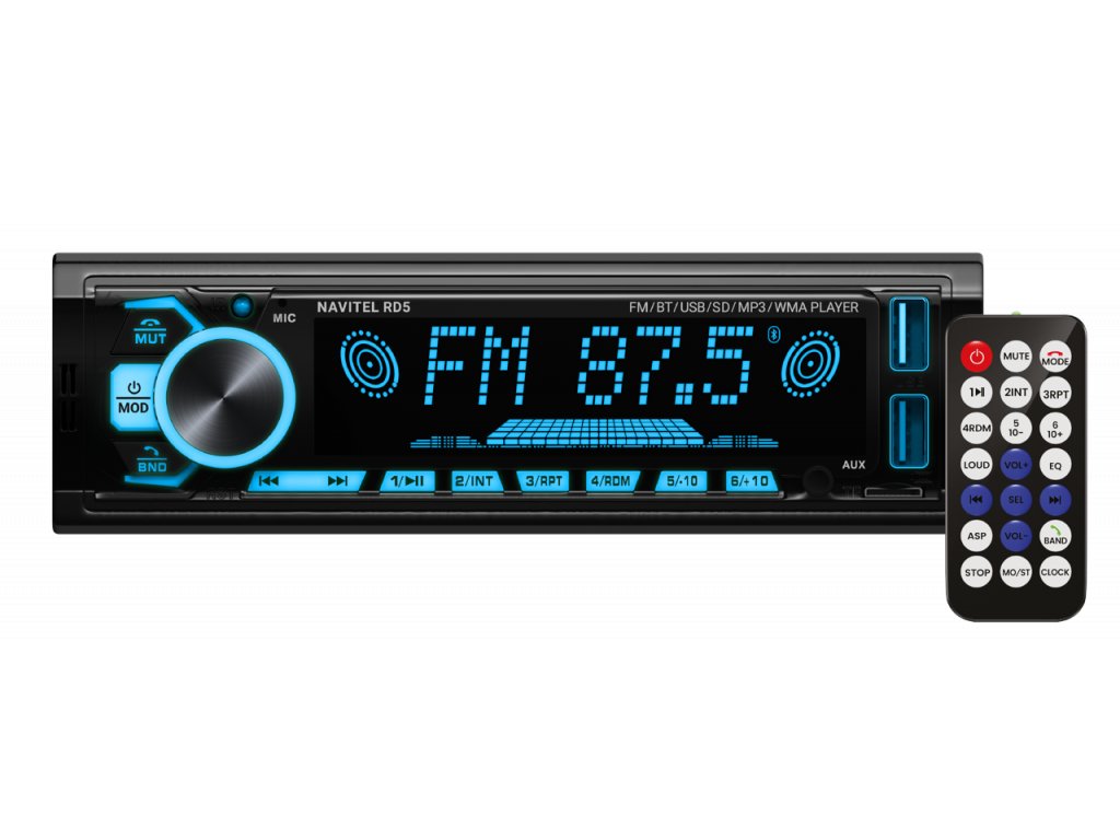 NAVITEL RD5 je multifunkční autorádio ve standardní velikosti 1DIN. Radio je vybaveno digitálním FM modulem s rozsahem příjmu FM 87,5-108 MHz, do paměti lze uložit 18 stanic, které lze snadno přepínat pomocí tlačítek na předním panelu. Zařízení poskytuje ovládání basů a výšek, stejně jako několik přednastavených nastavení ekvalizéru. Díky RCA výstupům můžete k zařízení připojit i externí zesilovač.