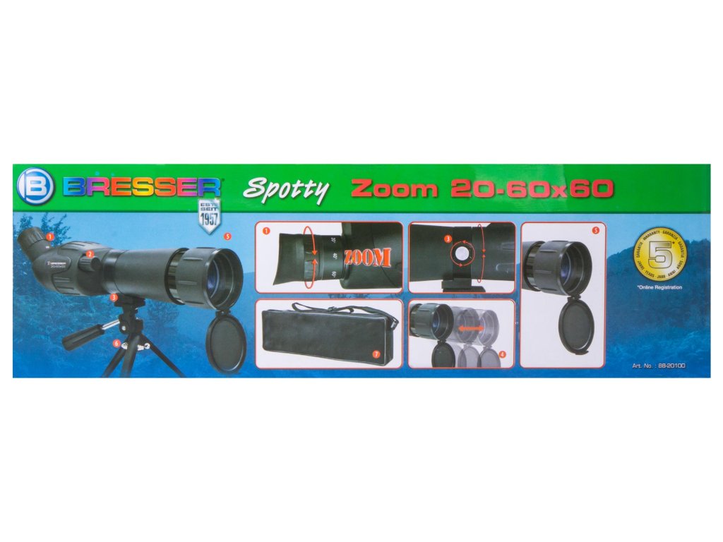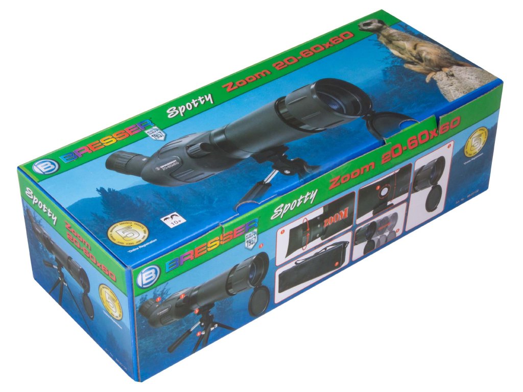 Výkonný Pozorovací dalekohled Bresser Junior Spotty 20–60x60 pro pozorování přírody a astronomie. Kompaktní design s excelentní optickou kvalitou. Ideální pro cestovatele a přírodní nadšence.