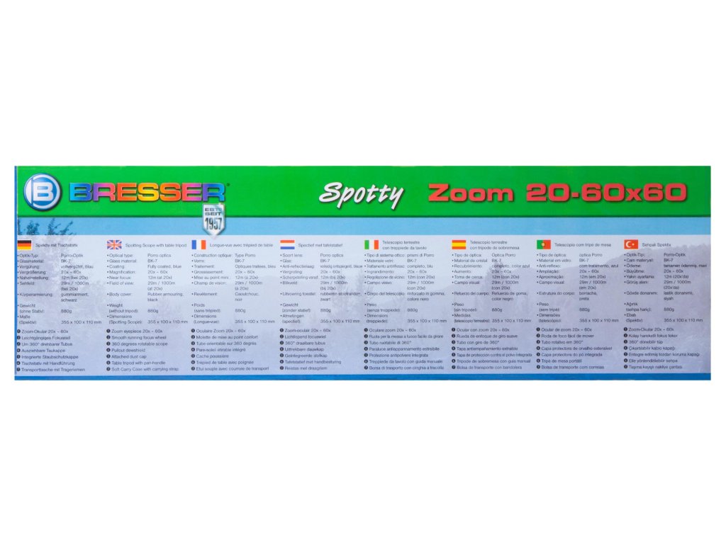 Start your discovery tour! This Bresser Junior Spotty 20–60x60 spotting scope includes a 60-fold magnification so you can observe and discover the nature around you. For a better stability you can use the tripod.