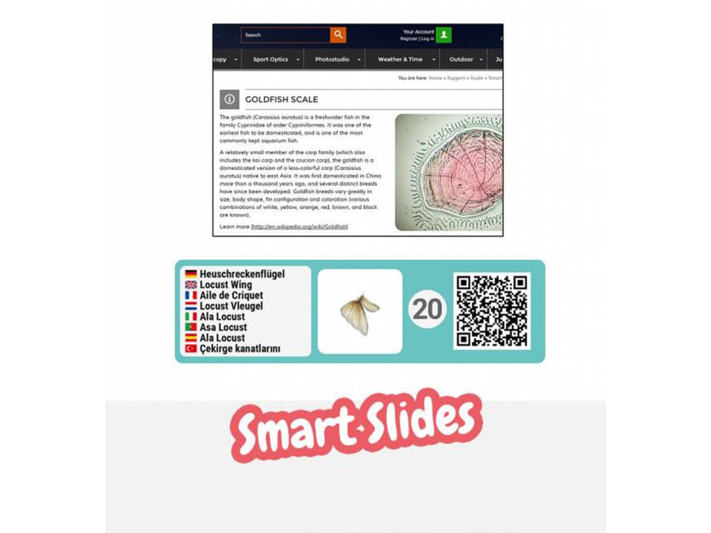Bresser Junior Microscopy Set contains 20 smart slides and 12 rare stones with a QR code. Scan this QR code with your smartphone and you'll get tons of information about the product!