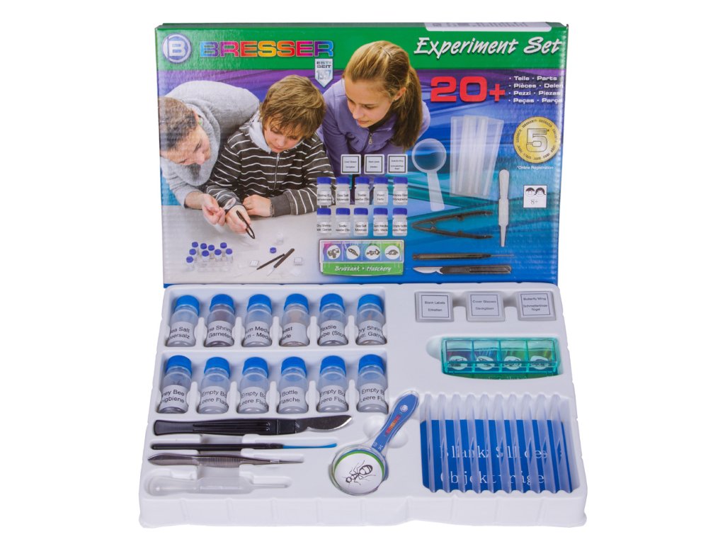 Darujte mladému zvídavému vědci pokusnou sadu Bresser Junior, aby byl jeho nebo její výzkum ještě zábavnější! Tato sada bude skvělým doplňkem k mikroskopu. Obsahuje více než 20 různých pomůcek k provádění pokusů, přípravě vlastních preparátů a k množení žábronožek (artemií).