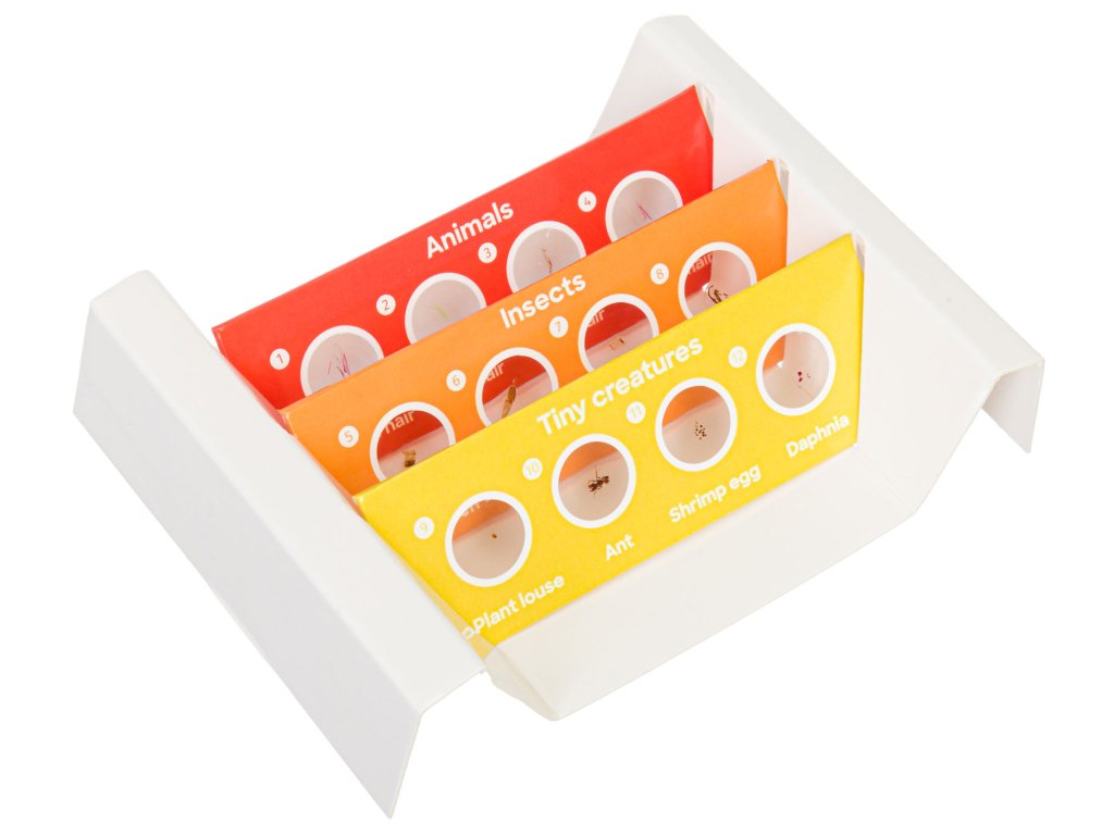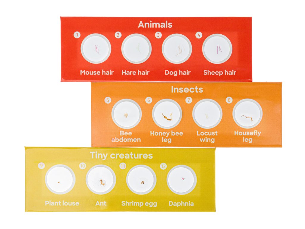 Sada Levenhuk Discovery Fauna obsahuje 12 zoologických hotových preparátů připravených k použití. Nemusíte hledat a chytat kousavý hmyz, kupovat si další vybavení pro jeho přípravu nebo trávit čas samotnou přípravou vzorků. Stačí jen připevnit hotové preparáty na stolek mikroskopu a začít je zkoumat.