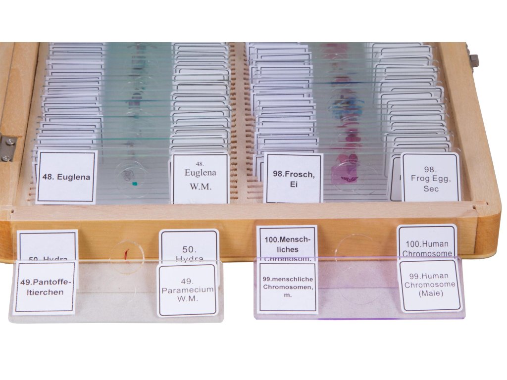 Sada preparátů připravených k pozorování mikroskopem Bresser, 100 ks v kufru