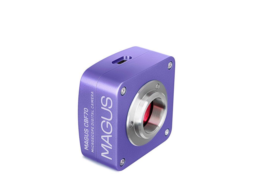 Profesionální vědecký fotoaparát MAGUS CBF70 je určen pro použití s mikroskopem a objektivy se 4x, 10x, 20x a 40x zvětšením. Přístroj umožňuje pořizovat fotografie, natáčet videa, předvádět ukázek, zobrazovat snímky na externí obrazovce a provádět úhlová a lineární měření zkoumaných objektů (pro správnou funkci je nutné provést kalibraci softwaru). Fotoaparát se doporučuje pro práci metodou světlého pole.