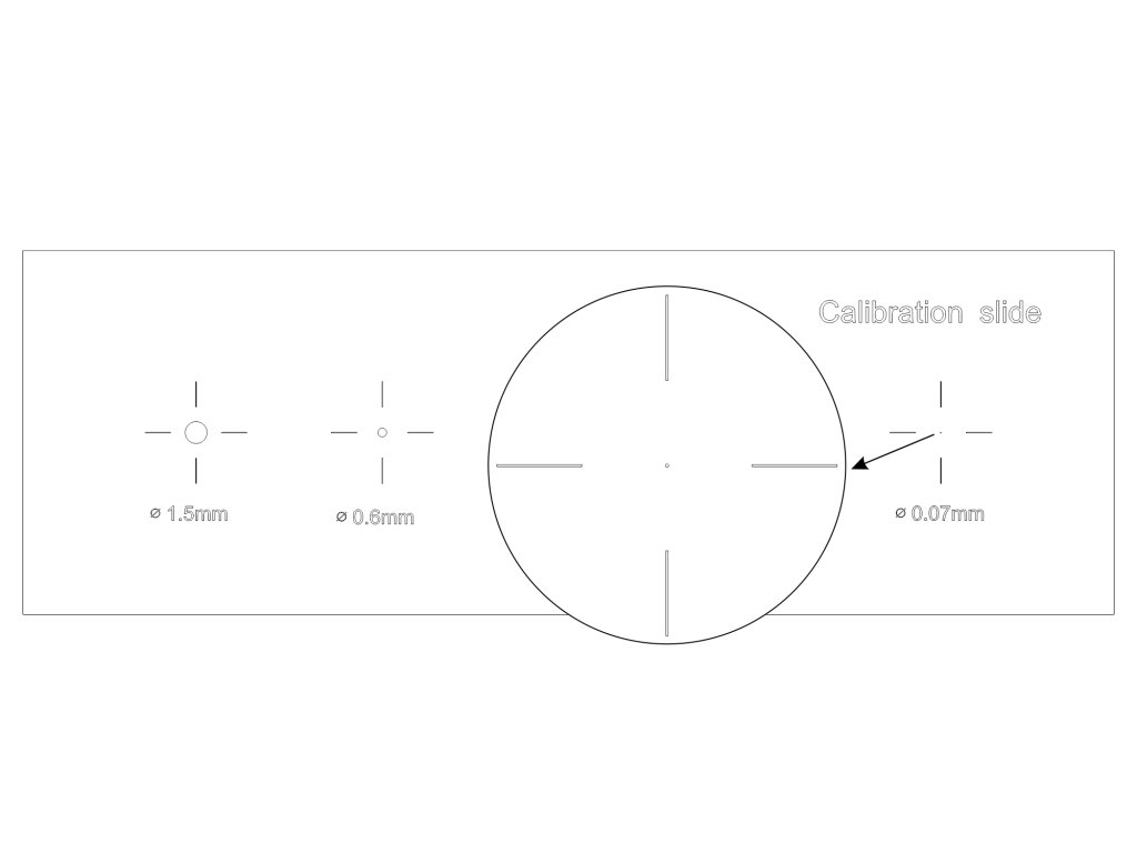 Kalibrace se provádí pro každý objektiv, který bude použit při pozorování. Kalibrační sklíčko se používá k určení kalibračního faktoru pro software pro analýzu obrazu.