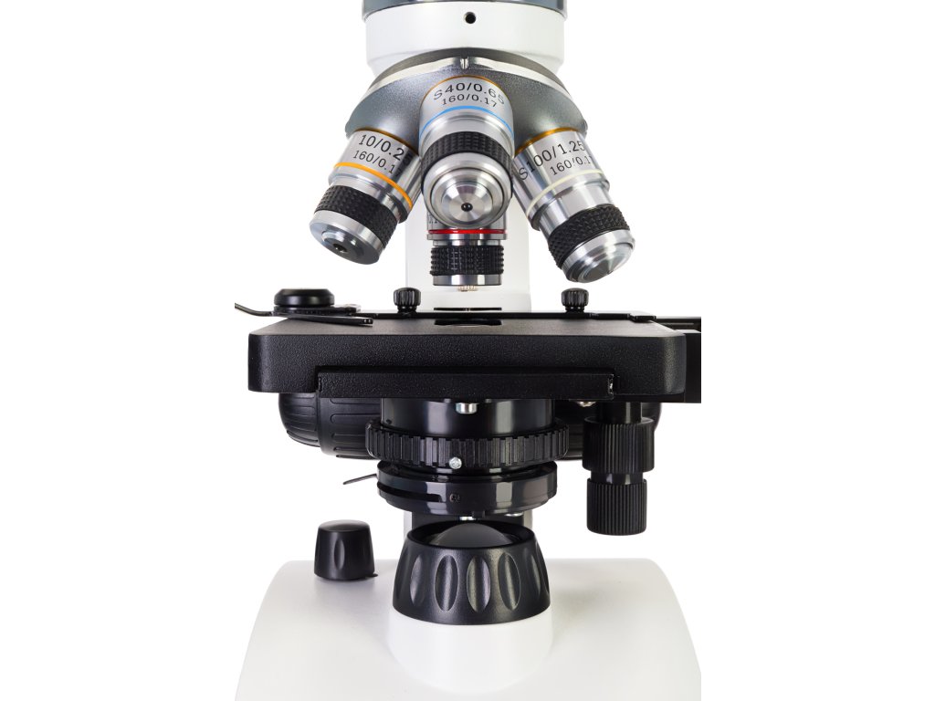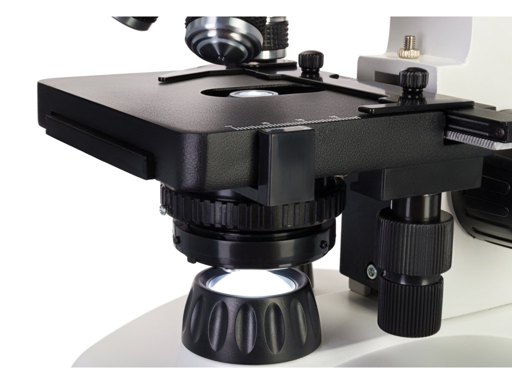 Stolek mikroskopu je doplněn mechanickým měřítkem pro optimální využití technik přípravy mikropreparátů. Osvětlovací systém se skládá ze dvou LED světel s proměnnou intenzitou. Horní osvětlení je nad stolkem a spodní osvětlení pod stolkem. Obě osvětlení lze napájet z baterií (nejsou součástí balení) nebo ze sítě prostřednictvím AC adaptéru (součást sady). Mikroskop je dodáván s Abbeho kondenzorem s irisovou clonou a držákem filtru.