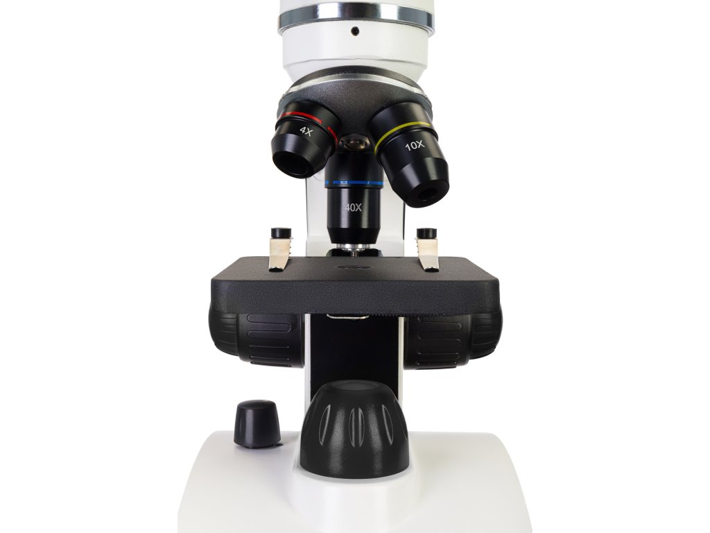 Monokulární hlava se může horizontálně otáčet o 360°. Hlavu lze také naklonit o 30°. To je užitečné pro dlouhodobá a skupinová pozorování, protože práce s mikroskopem je tak pohodlnější. Optika včetně achromatických objektivů a širokoúhlého okuláru je vyrobena ze skla. Objektiv s 40x zvětšením je vybaven ochranným pružinovým rámem, který chrání přední čočku objektivu před poškozením. Rozsah zvětšení mikroskopu je od 40x do 400x. Hrubé zaostřování lze nastavit pomocí bočních knoflíků pro hrubé zaostření.