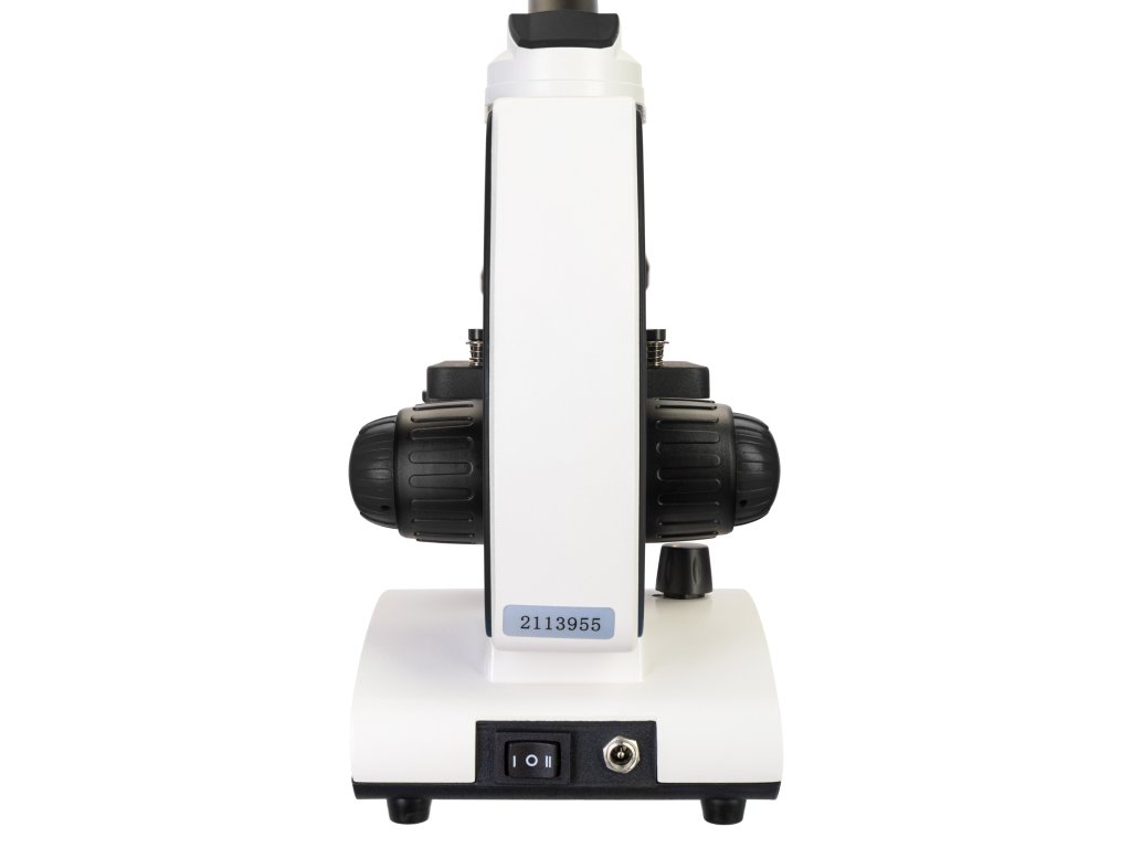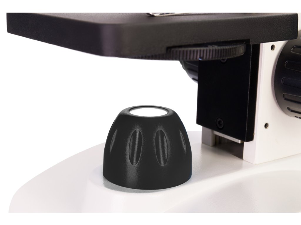 Sklíčka se upevňují na stolek pomocí svorek. Pod stolkem je kotoučová aperturní clona pro regulaci světelného toku ze spodního LED osvětlení. Mikroskop je vybaven hrubým a jemným zaostřováním, takže ostrost je možno nastavit rychleji a pohodlněji. Tělo mikroskopu je vyrobeno z kovu.