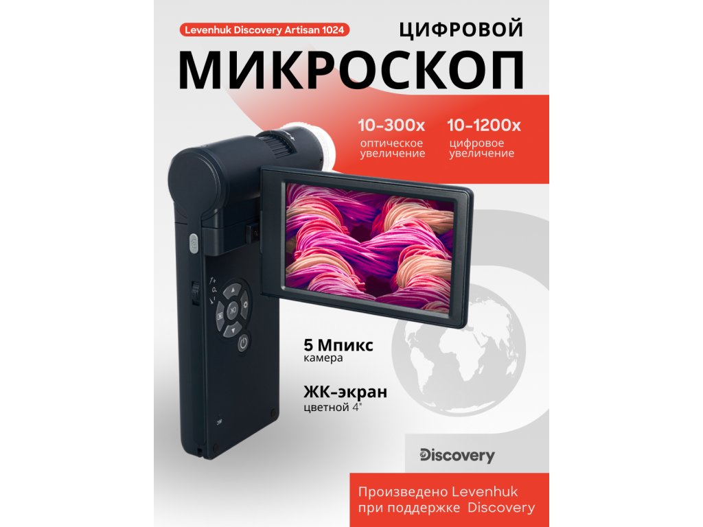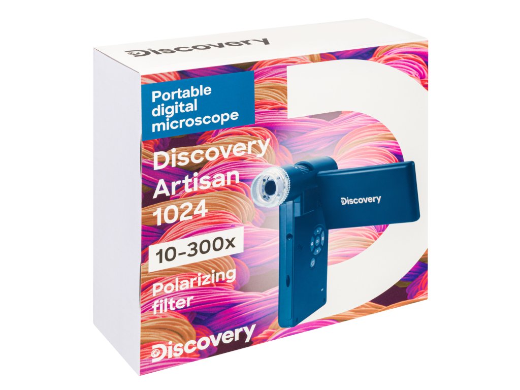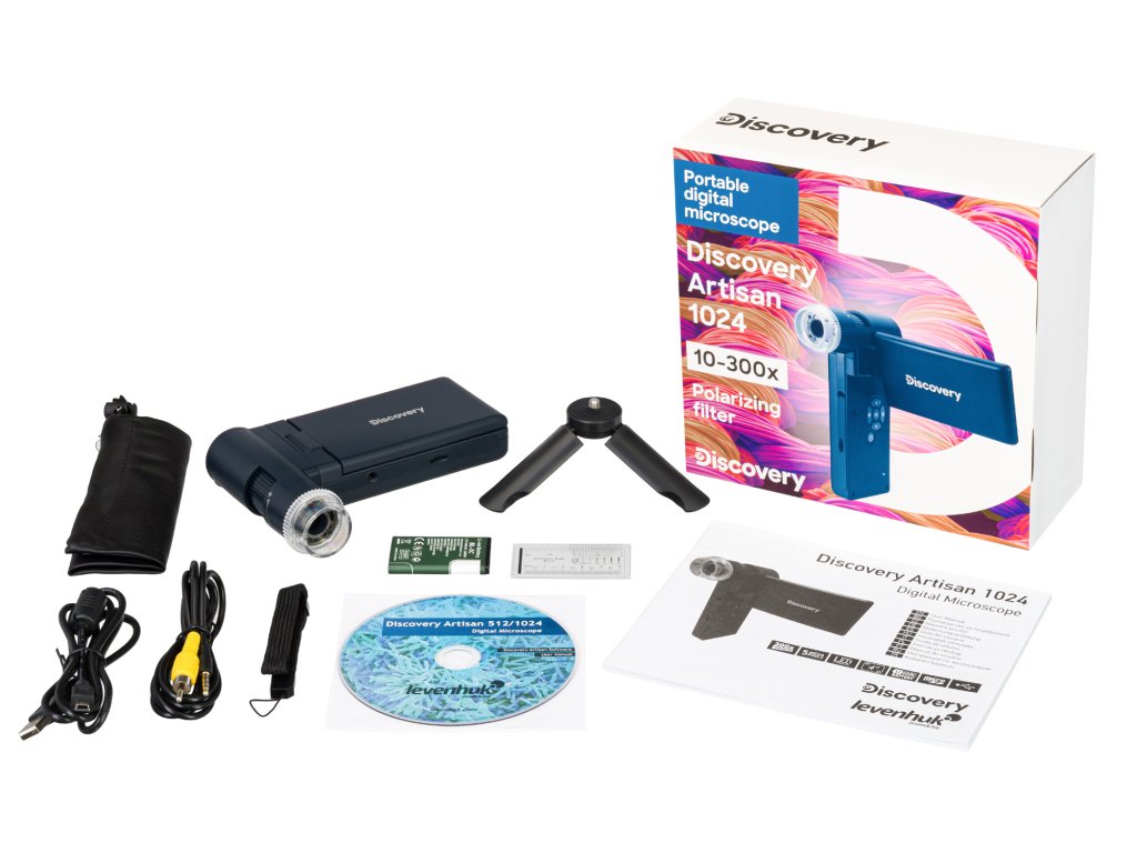 Levenhuk Discovery Artisan 1024 je přenosný mikroskop s 5 MP digitální kamerou. Tento přístroj lze napájet ze síťového zdroje nebo z baterie, aby bylo možné jej vzít kamkoli s sebou. Je praktické jej vzít s sebou při návštěvě klienta nebo při zkoumání vzorků v terénu. Je praktický také pro prezentace a skupinové pozorování, neboť je kompatibilní s externími zařízeními. Zařízení disponuje funkcemi užitečnými pro různé specialisty: klenotníky, geology, numismatiky, pracovníky v servisech, znalce a odhadce a mnoho dalších. Přenosný mikroskop je často používán ke kontrole kvality zboží v obchodech a detekci růstu nežádoucích životních forem na ovoci a zelenině.