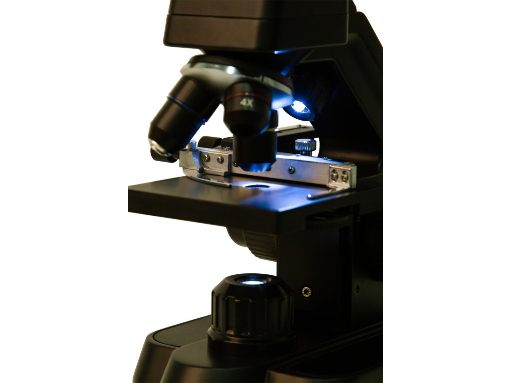 The mechanical crosstable and the coarse and fine focus makes adjusting and screening the sample easy. The 40x objective is sufficient to view small microorganisms and even bacteria, e.g. from a hay infusion. With the additional reflected light you can also view (small) non transparent samples, like plant matter, sand, or insects. The reflected light should be used with the 4x lens. A sample preparation is usually not necessary in this viewing mode, which makes it especially easy for children to get their first glimpse of the micro world.