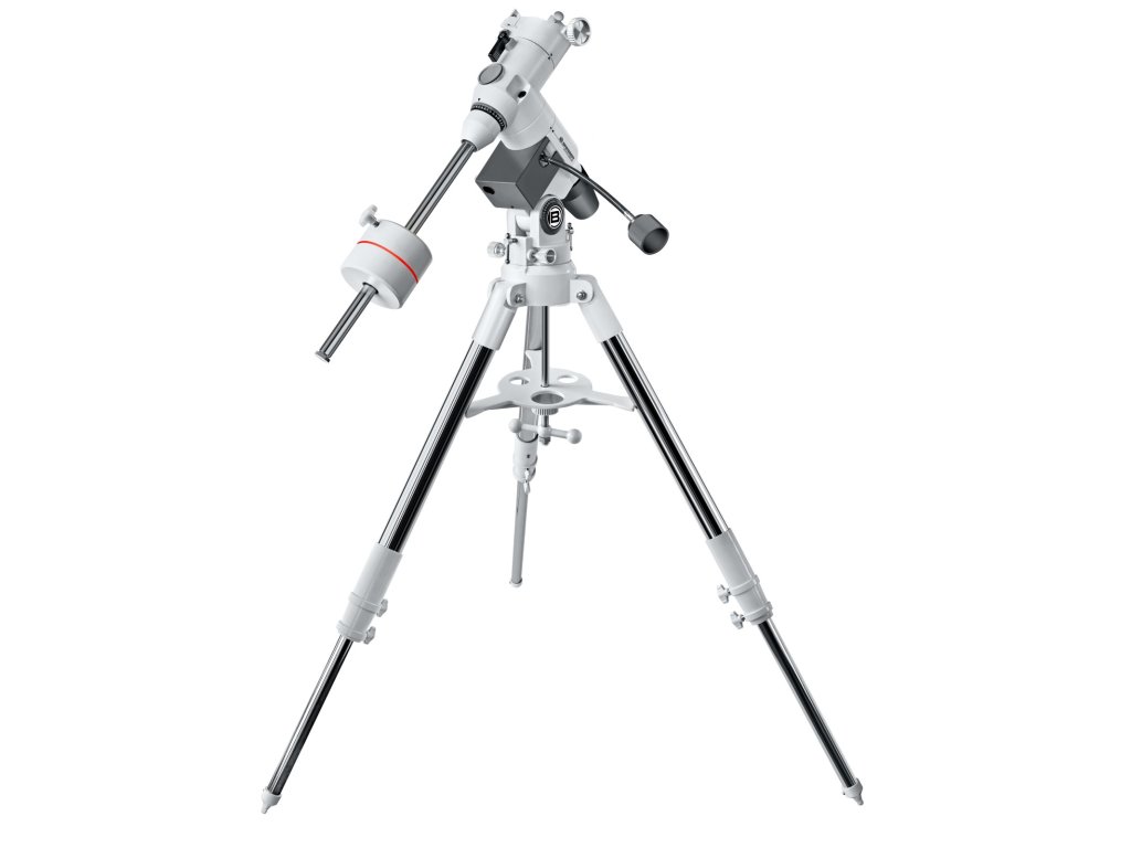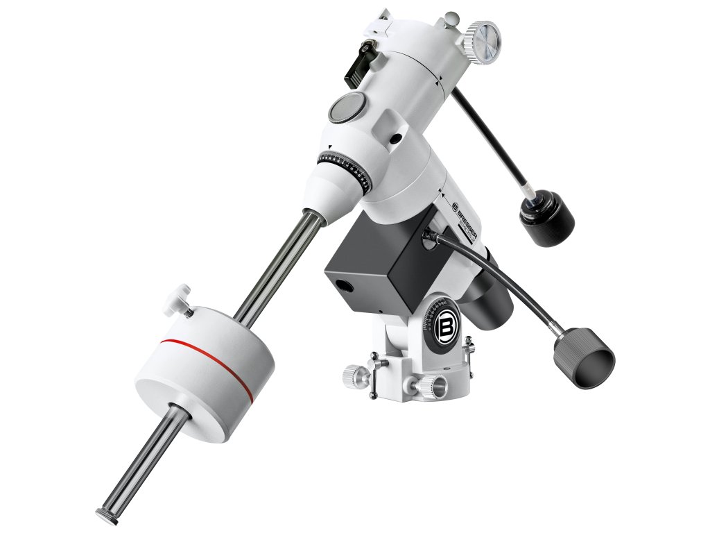 Montáž Bresser Messier EXOS-2/EQ5 představuje pevný držák s funkcí přesného sledování pro astronomická pozorování a fotografování. Stativ potlačuje vibrace a umožňuje stabilní pozici. Je dobře opracován a má osvětlený pólový hledáček. Přístroj Bresser EXOS-2 má nosnost až 13 kg. Díky tomu můžete používat refraktory o průměru až 152 mm a reflektory o průměru až 203 mm.