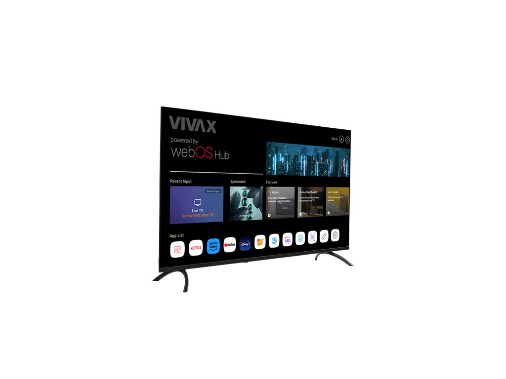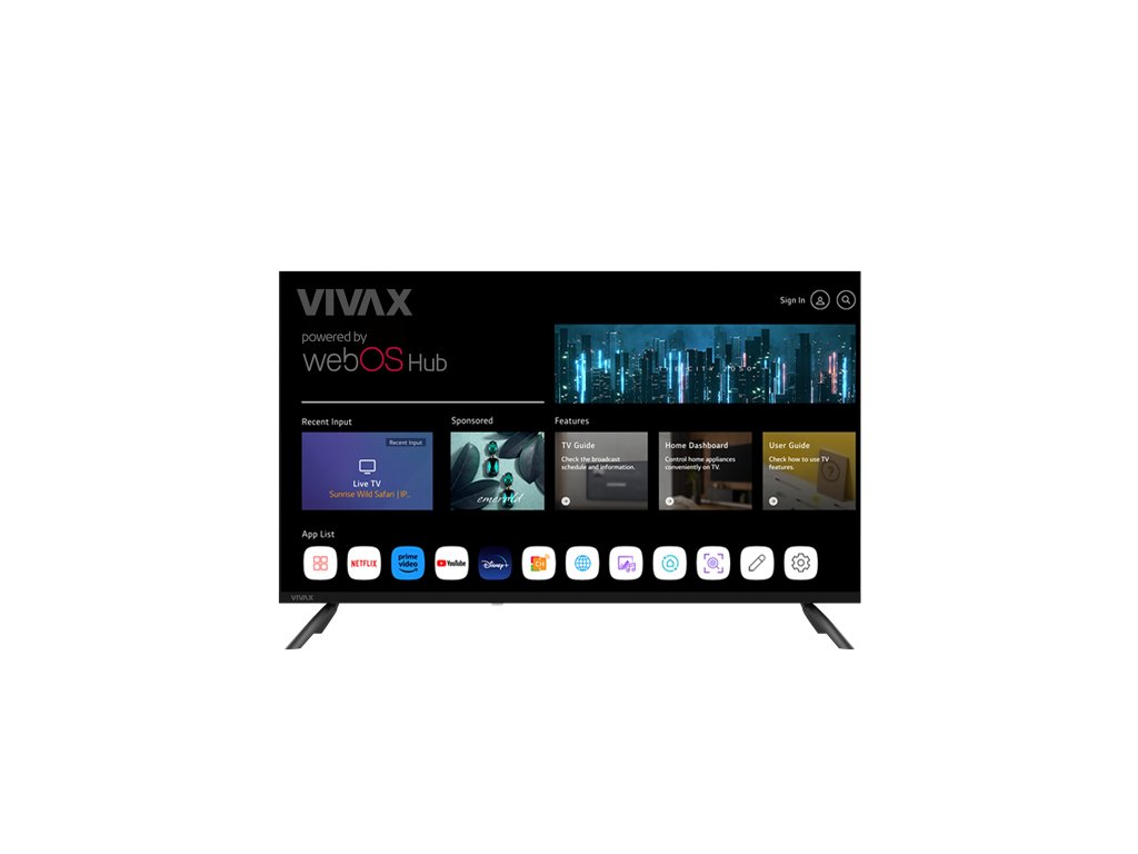 Chytrý 40” televizor Vivax TV-40LE110WO s úhlopříčkou 100 cm a rozlišením Full HD (1920 × 1080 px) nabízí ostré zobrazení s výrazným kontrastem a přirozenými barvami. Díky modernímu operačnímu systému webOS Hub získáte rychlý a jednoduchý přístup k oblíbeným aplikacím – Netflix, YouTube, Prime Video a dalším – vše přehledně na domovské obrazovce.