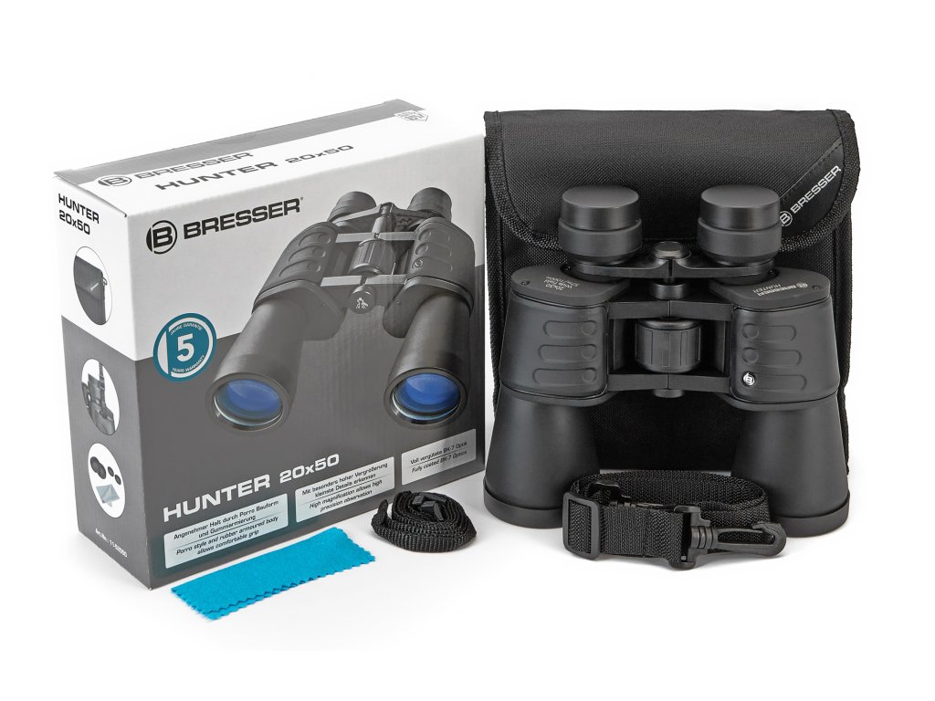 The Bresser Hunter 20x50 binoculars new design provides impressive performance. Due to the minimised lightweight design, this inexpensive model is the ideal companion in many situations. The fully coated optics and solid mechanics enable a true colour image reproduction. The high magnification is ideal for observing distant objects.
