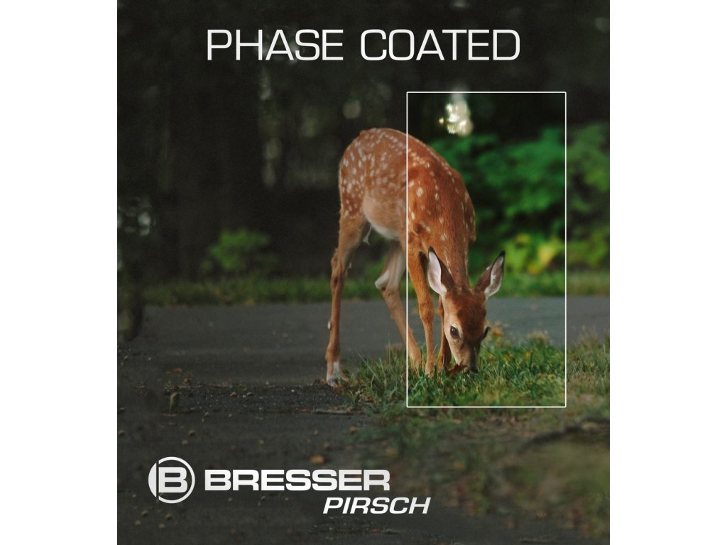 Optika těchto skvělých triedrů je kompletně opatřena několikanásobnou speciální fázovou povrchovou vrstvou, díky níž je výsledný obraz vždy jasný, čistý a kontrastní. Triedr je vybaven vysoce kvalitním optickým sklem BaK-4. Dvoustupňové nastavitelné očnice zajišťují pohodlné sledování pro osoby nosící brýle. Spolehlivé tělo naplněné dusíkem zabraňuje zamlžení optiky a chrání přístroj před stříkající vodou. Gumové pancéřování pláště zajišťuje bezpečný a pohodlný úchop. Dalekohledy Bresser Pirsch 10x42 jsou dodávány s praktickým popruhem na krk.