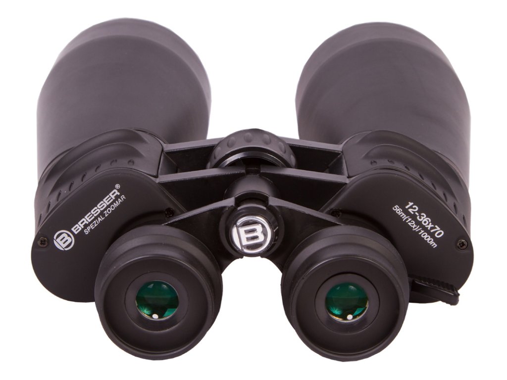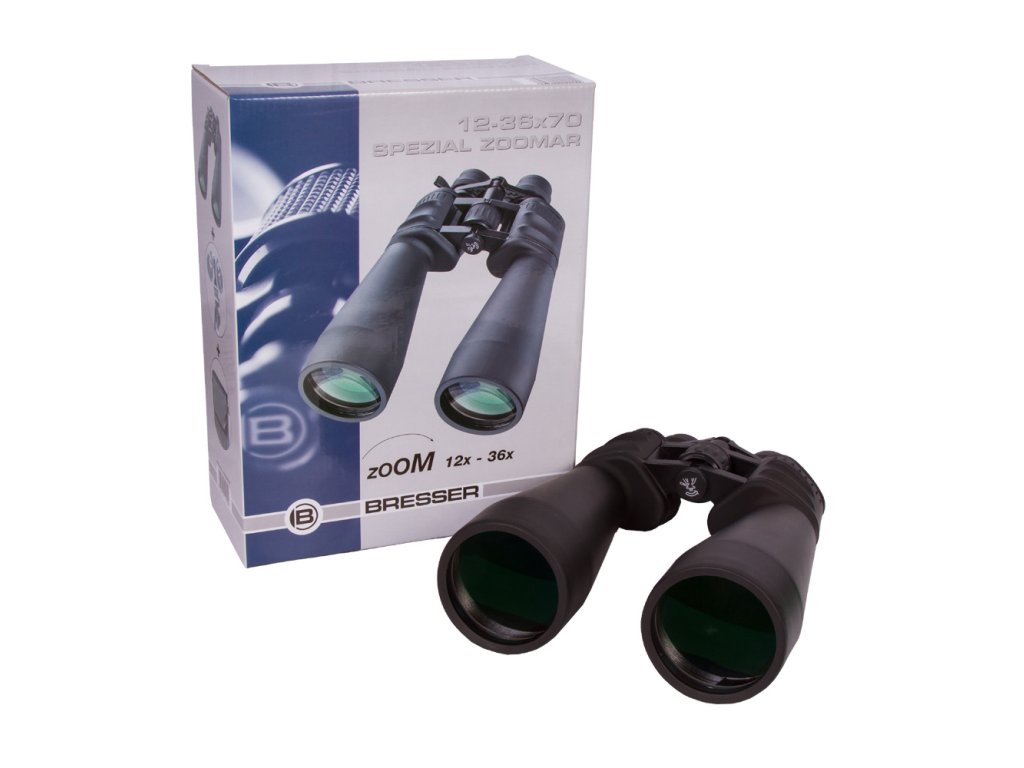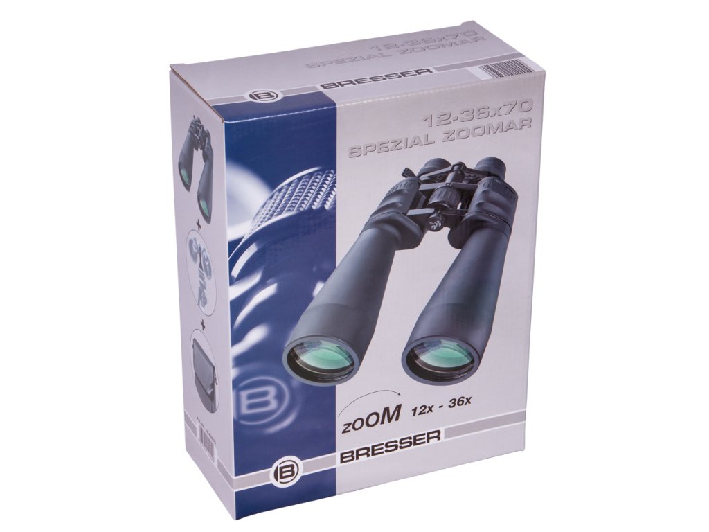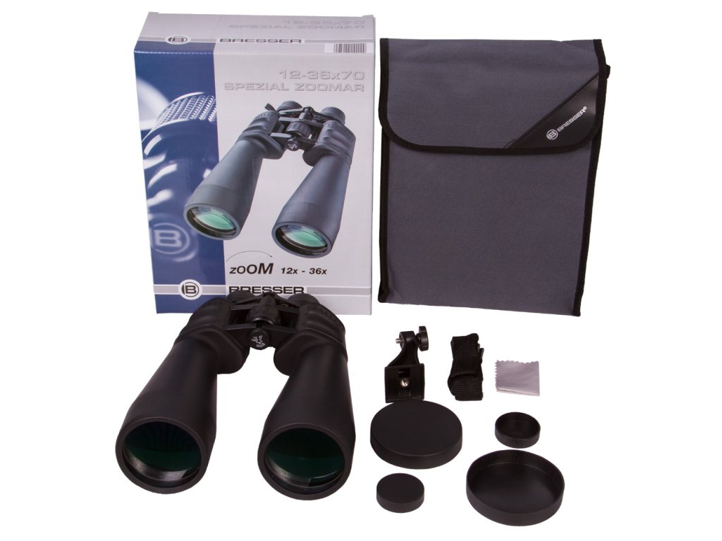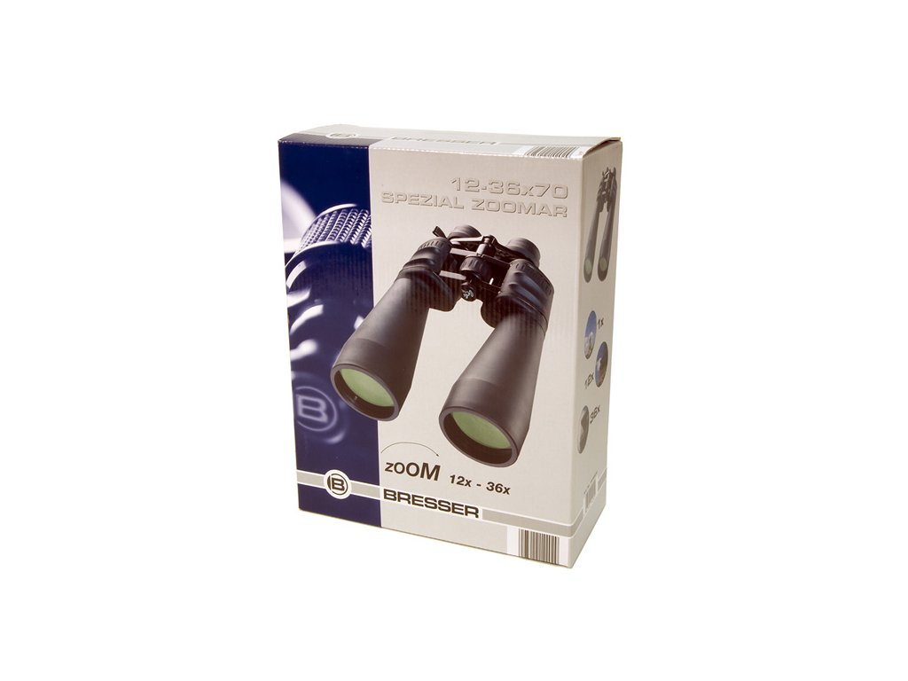 Bresser Spezial-Zoomar 12–36x70 – výkonný model s velkou aperturou a variabilním přiblížením v rozsahu 12x–36x. Velké přiblížení může způsobovat roztřesený obraz – proto doporučujeme používat tento model v kombinace se stativem. Triedr lze snadno namontovat na stativ pomocí speciálního adaptéru (součástí sady). Tento model je díky velké apertuře 70 mm ideálně vhodný k astronomickému pozorování.