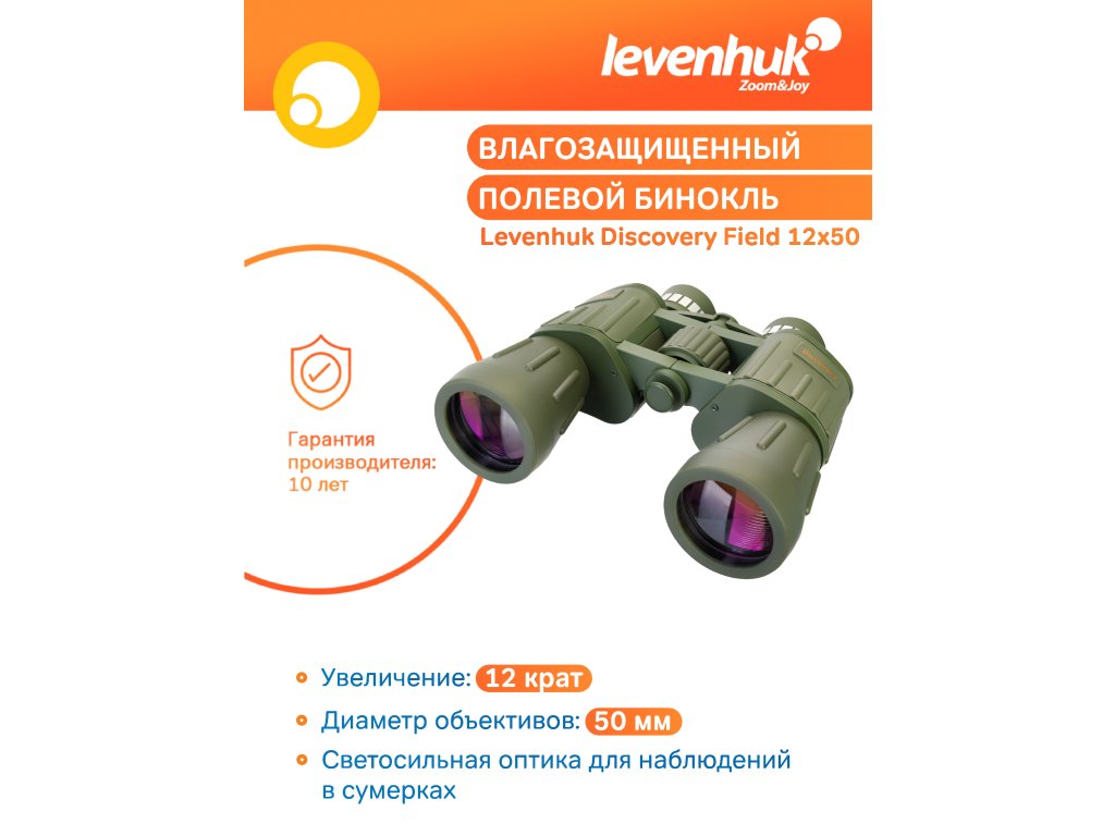 Levenhuk Discovery Field 12x50 je binokulární dalekohled s nejvýkonnějším zvětšením ve své řadě, tj.12x. Tento přístroj bude skvělým pomocníkem pro pozorování na volném prostranství, a to za slunečného dne i za oblačného počasí nebo za soumraku. Ocení jej všichni, kteří potřebují výkonný přístroj pro ostrahu území, nebo pro lov zvěře a výpravy za zvířaty do divoké přírody, nebo pro pěší turistiku v horách a lesích. S velkou aperturou objektivu mohou tyto binokulární dalekohledy shromáždit hodně světla. Čočky s vícevrstvým antireflexním povlakem na všech optických prvcích poskytují kontrastní, čistý a živý obraz.