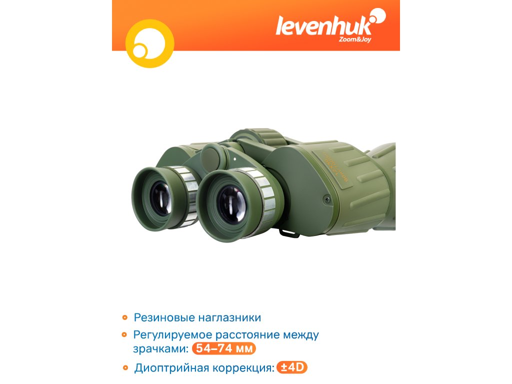 Optika binokulárního dalekohledu Levenhuk Discovery Field 12x50 je vyrobena ze skla BK-7, zatímco tělo je vyrobeno z odolného, ale lehkého plastu. Pogumované tělo zajišťuje ochranu proti mechanickému poškození, vlhkosti a prachu. Díky vnějšímu reliéfnímu povrchu tento binokulární dalekohled velice dobře padne do ruky a neklouže. Čočky objektivu lze nastavit pomocí praktického centrálního zaostřovacího tubusu, který je také pogumovaný. V případě potřeby můžete nastavit dioptrie tak, aby odpovídaly rozdílům ve vašem vidění mezi pravým a levým okem.