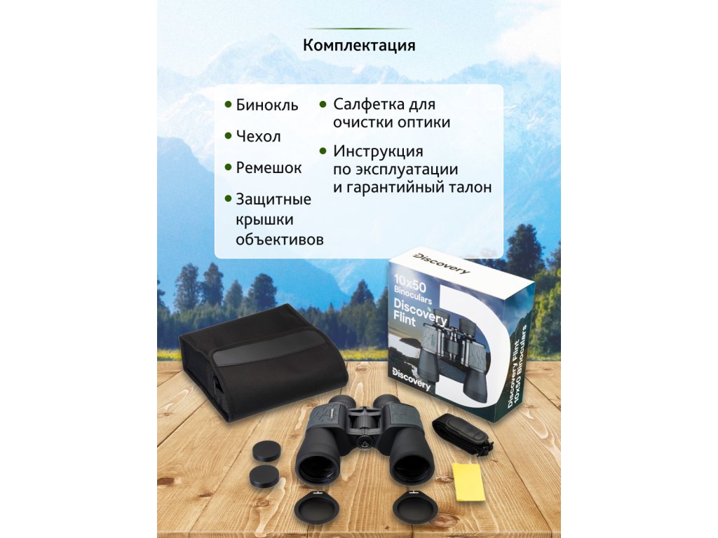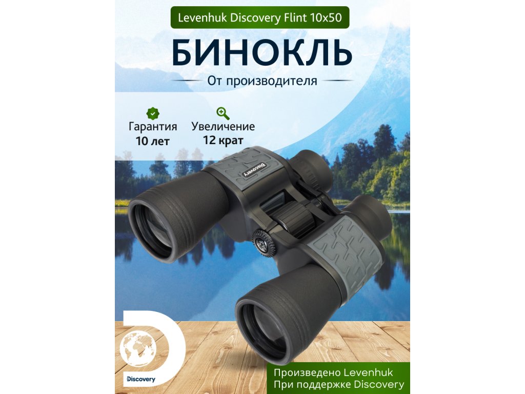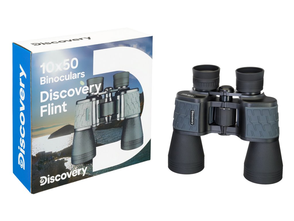Levenhuk Discovery Flint 10x50 je univerzální binokulární dalekohled pro pozorování na otevřeném prostranství. Oblasti použití jsou široké: sledování zvířat na lovu, kontrola terénu v blízkosti tábořiště, bezpečnost a ochrana chráněného území atd. Tyto dalekohledy s 10x zvětšením mají široké zorné pole a lze je upevnit na stativ pro dlouhodobé stacionární pozorování.