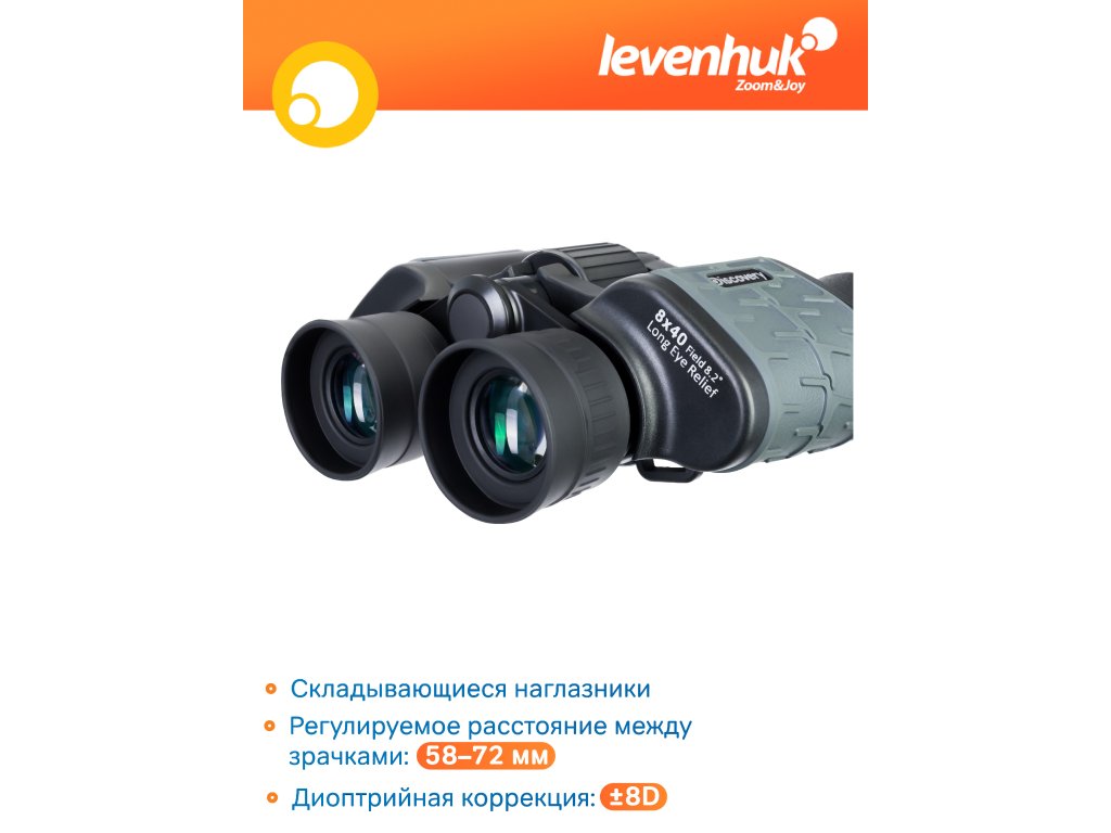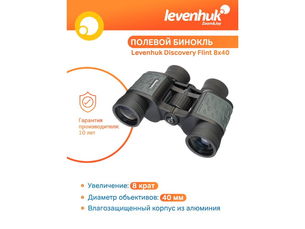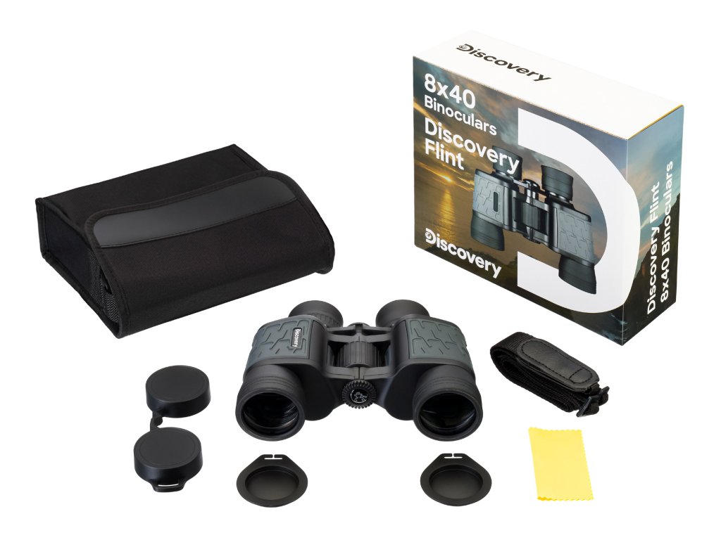 Levenhuk Discovery Flint 8x40 – polní binokulární dalekohled s klasickou kombinací 8x zvětšení a 40 mm průměrem čočky objektivu. Je to ideální přístroj pro mnoho úkolů pozorování v přírodě: sledování zvířat, prohlížení krajiny, vyhledávání turistických tras v okolí, pozorování ptáků a mnoho dalšího.