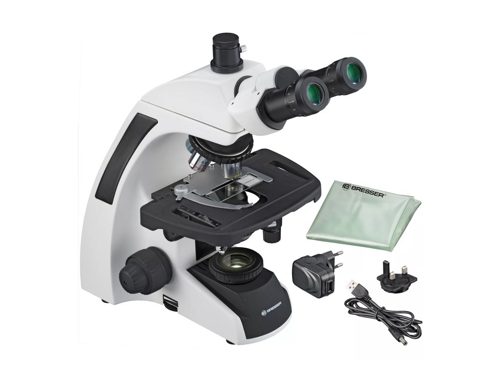 The New Bresser Science Infinity is the new top of the range of the biology microscope series by Bresser. It is based on infinitely corrected planachromatic objective lenses with superb image quality. Because of the modern design and optics the installation of accessories is very simple and one has many options. The WF 10x eyepieces offer a large visual field of 22mm and are also suitable for spectacle wearers. For protection purposes the eyepieces are rubber coated. The interpupillary distance can be adjusted from ca. 55mm to 75mm. Dioptre adjustments are possible with both eyepieces.