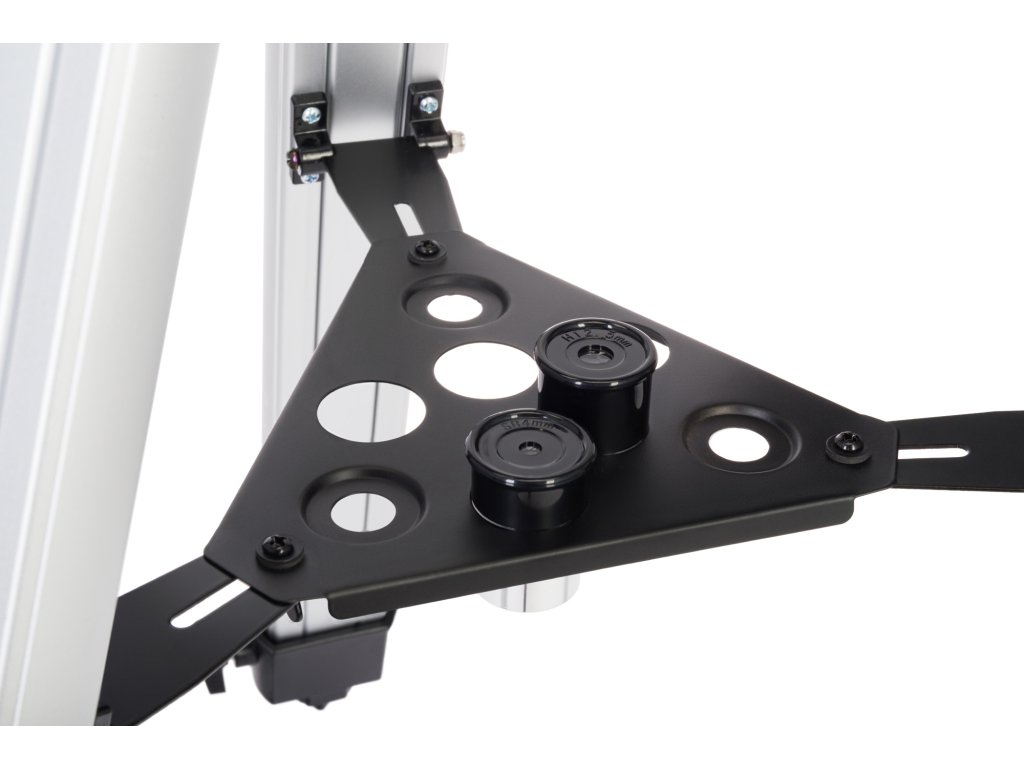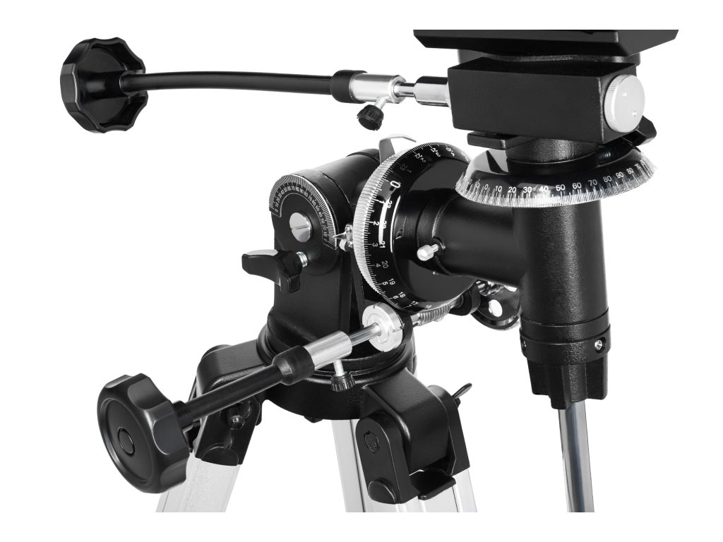 Robustní hliníkový stativ vám pomůže stabilizovat hvězdářský dalekohled na vybraném místě pozorování. Výšku stativu lze přizpůsobit uživateli. V přihrádce na příslušenství uprostřed jsou uloženy náhradní okuláry, montáže atd. Vše, co byste mohli k pozorování potřebovat, je již součástí dodávky.