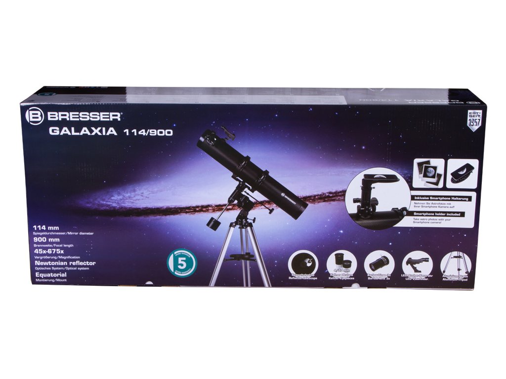 Hvězdářský dalekohled Bresser Galaxia 114/900 s adaptérem pro chytrý telefon