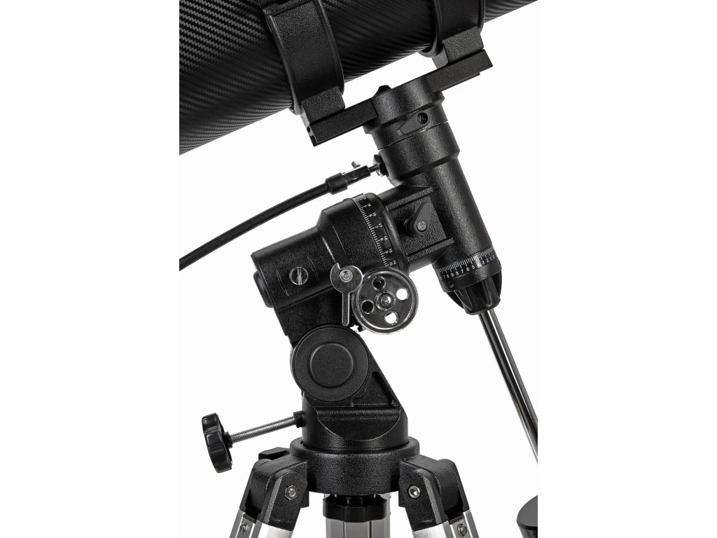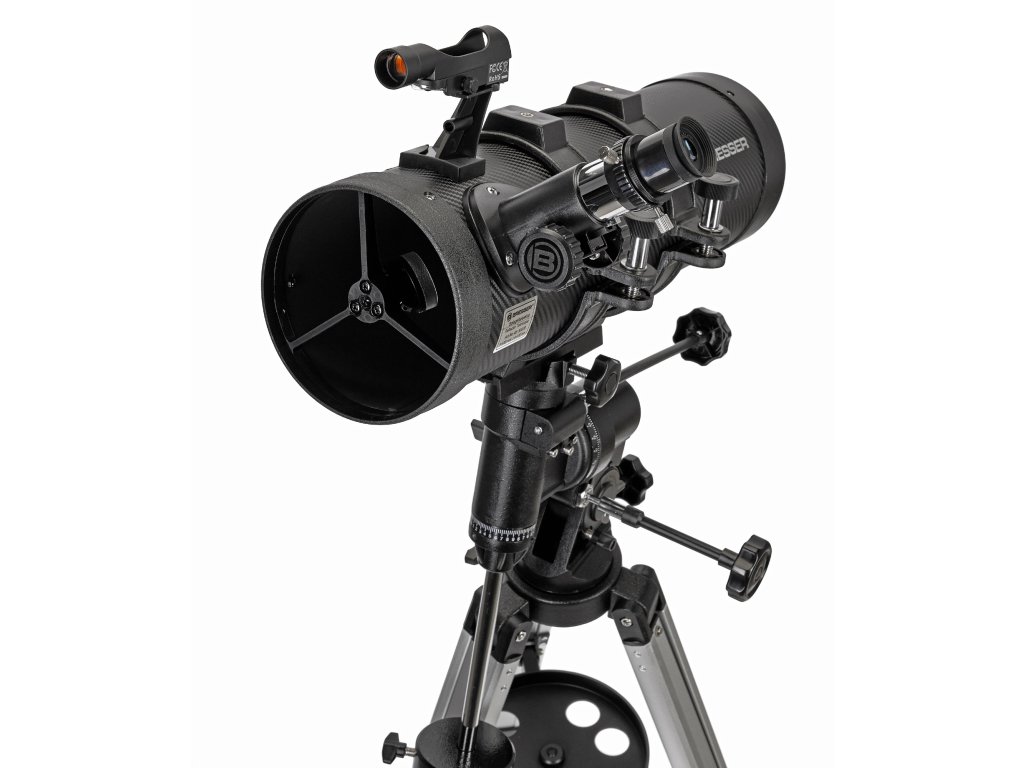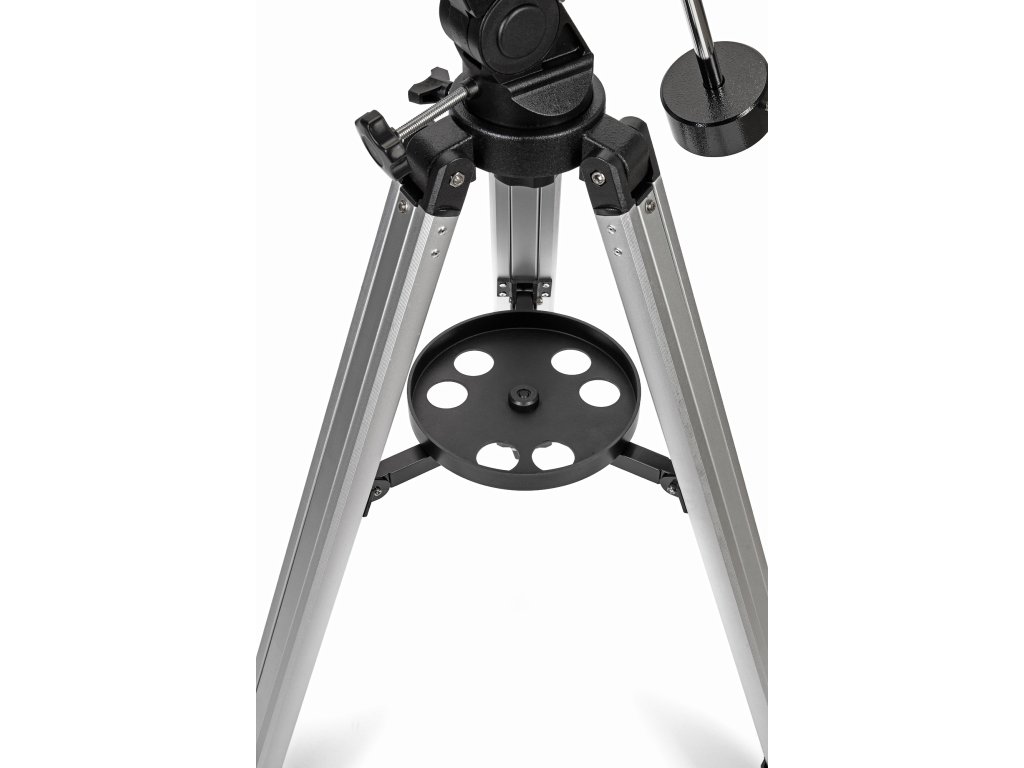 A great serious beginner's scope with reasonable aperture mirror and a long focal length which allows the observation of many celestial targets. Thanks to the catadioptic system (integrated Barlow lens) the length of the tube is kept to a minimum, which aids transportation and storage. The Bresser Spica comes on an equatorial mount with aluminium tripod, allowing accurate tracking of objects at high powers, using integrated gears and manual slow motion controls (the mount can also be motorised with the addition of a Right Ascension motor kit at a later date). All Newtonian Telescopes have a drawtube focuser on the side of their tube, this offers an adjustable viewing angle, which can be set to the user's liking by revolving the tube in the support rings - offering comfort while observing celestial bodies. Explore the planets within our solar system and discover the brighter deep sky objects.